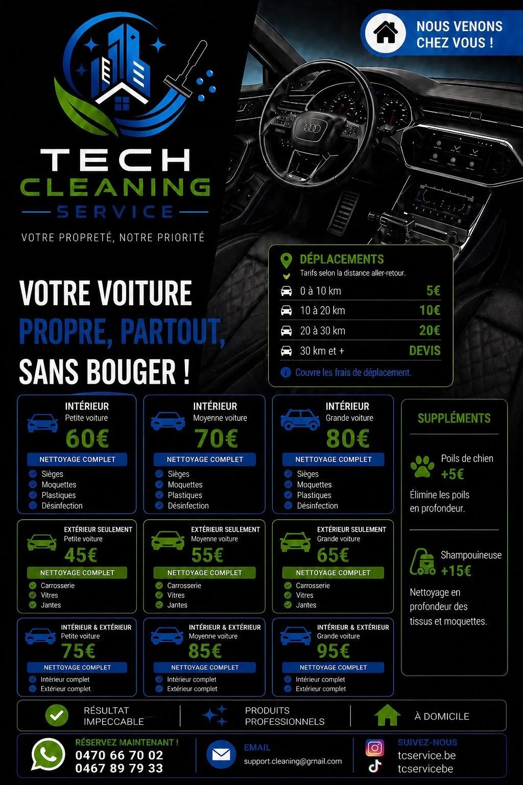 Nous nettoyons citadines, berlines, SUV, utilitaires et véhicules professionnels.